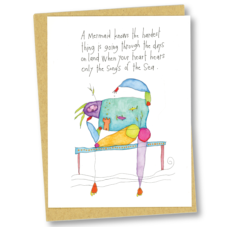 We are two artists & a dog. In a little house nearby the sea, we make, write, & design everything you'll find here at Flying Edna. Our studio is planet-friendly & we work with found & sustainable materials, because it matters.
